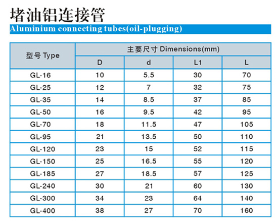 GL堵油型铝对接管 Home您现在的位置:网站首页 >> 产品中心 >> 铜 铝对接管